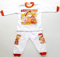 Toko baju bayi Bandung menyediakan setelan kaos lengan panjang dengan bahan lembut dengan gambar kartun menarik